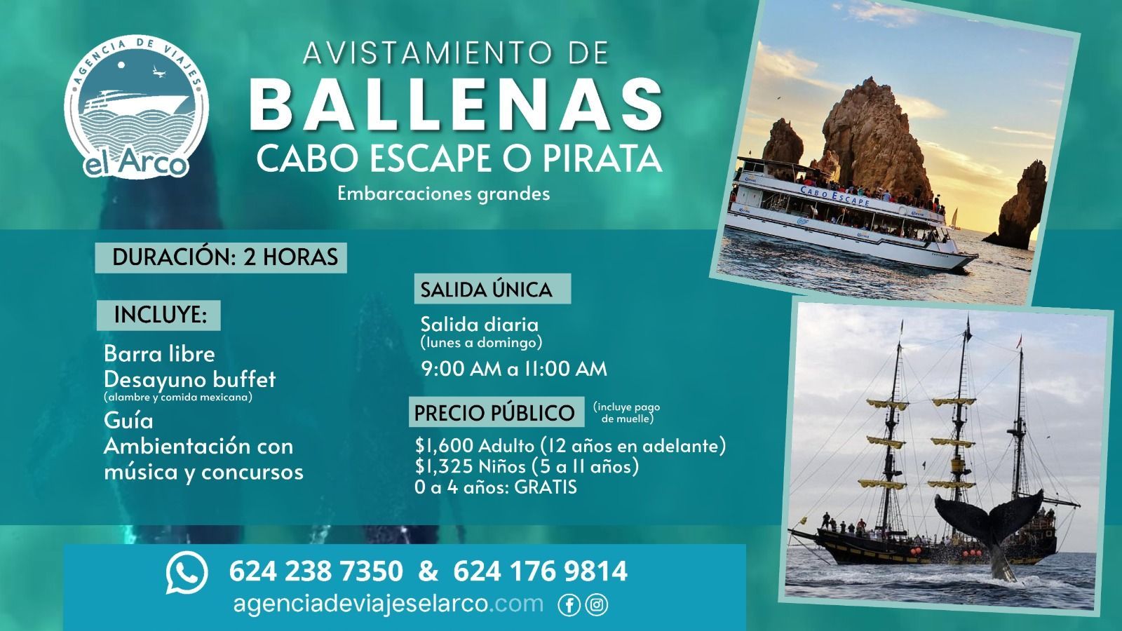 Ofrecemos paquetes de viajes a Los Cabos, paquetes turísticos, tours ecológicos, avistamiento de ballenas, recorridos a El Arco, transportación terrestre y cualquier actividad que quieras realizar durante tu estancia en este maravilloso paraíso peninsular.